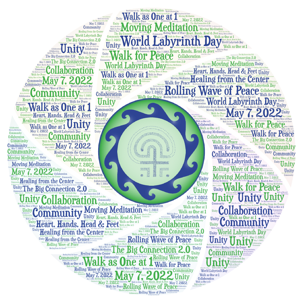 BUT thankfully The Labyrinth Society, lead partner of WLD, is coordinating various online events plus you can also access some interesting webinars and a new labyrinth research project (aka “The Big Connection”) through their portal at worldlabyrinthday.org. Also, Veriditas is holding an online handheld/finger labyrinth “walk” at 4PM EDT on Saturday… details & registration see veriditas.org where you can also download a labyrinth pattern.