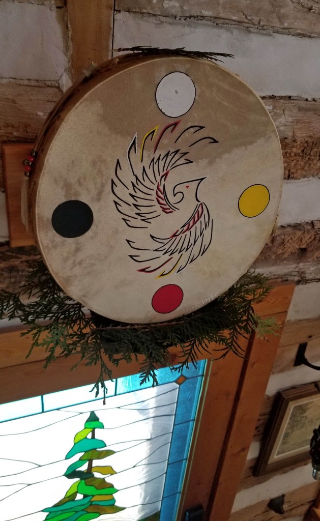 It’s nice to have ritual as part of astronomical milestones like equinox and solstice. One of the things I do is replace the cedar boughs beneath an ornamental drum which sits above my front door. That drum, purchased from an Indigenous-run Native Arts store in downtown Burlington which has long since disappeared, has travelled with me through almost 2 decades of my life.