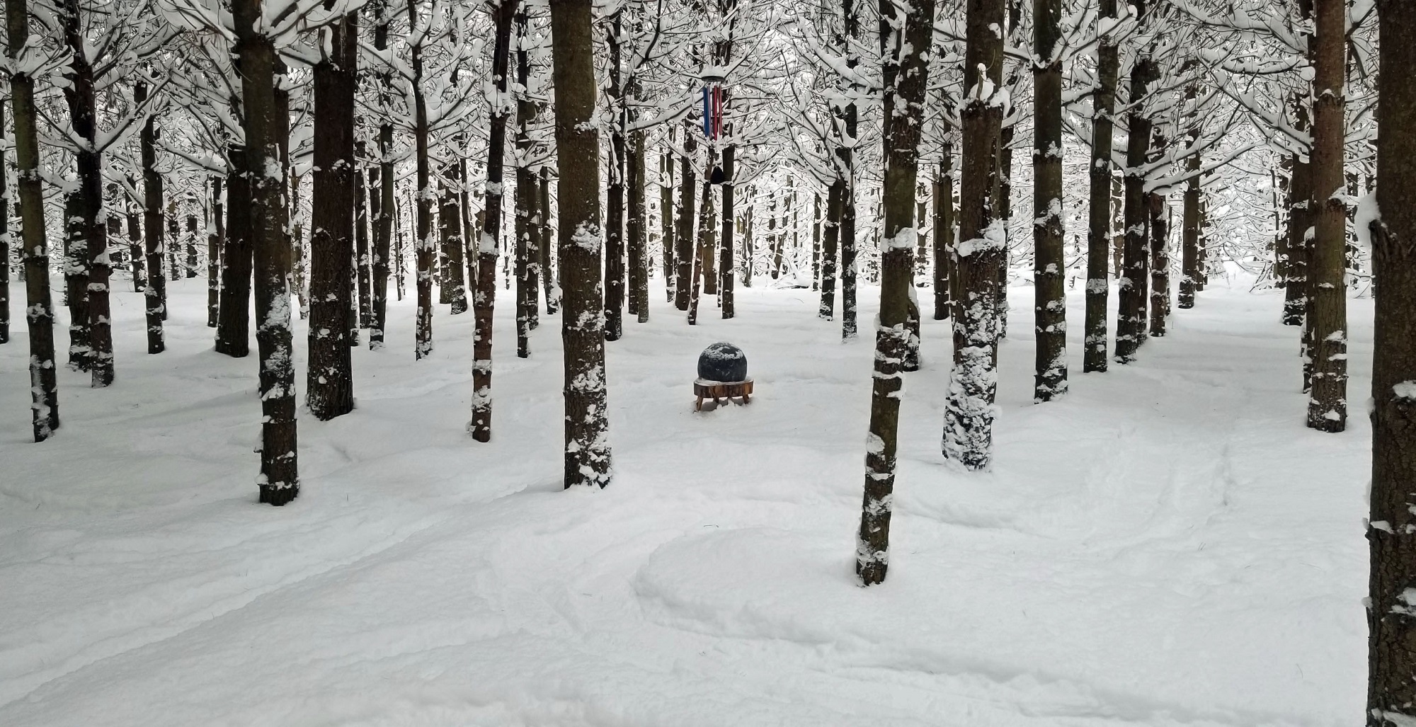 While the trail from the parking, and the labyrinth itself, could probably be managed in tall boots, I really do recommend snowshoes… it’s a lot easier going, and a far more peaceful experience. The forest is looking beautiful, even magical, from all the recent snow we have had so feel welcome to experience a truly Canadian labyrinth experience. And if you don’t have snowshoes, you’ll find a couple pairs at my front door you can borrow… they fit most winter boots.